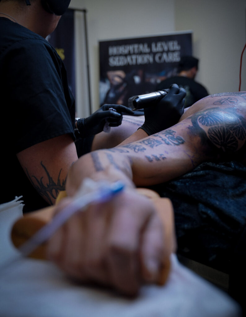 This is not numbing cream. This is not surface-level comfort. This is surgery-level sedation care applied to body art. Instead of dividing a large tattoo into multiple painful appointments, extensive work can be approached strategically — under supervision and with precision.